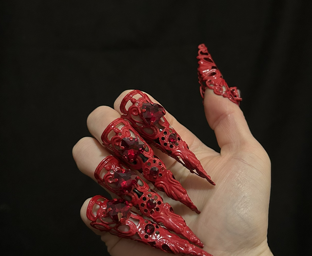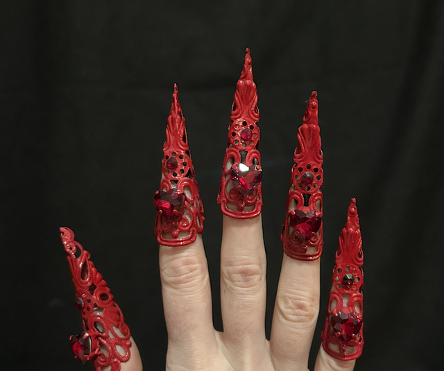 Lovely valentines themed red nail claws with red rhinestone heart adornment. Matches my discontinued adore crown set.