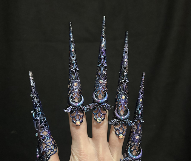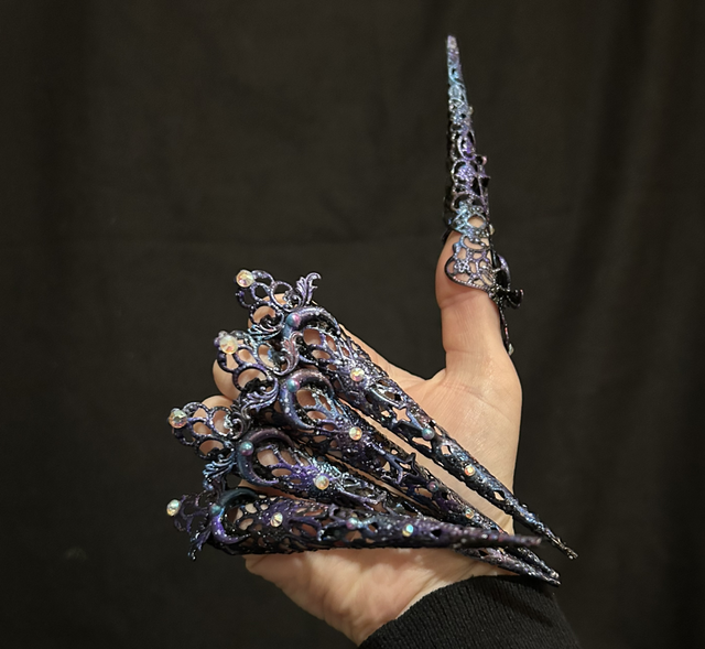 Lovely set of 5 custom colour themed Andromeda nail claws- to match the andromeda crown! These are my last left over set and in need of a new home.