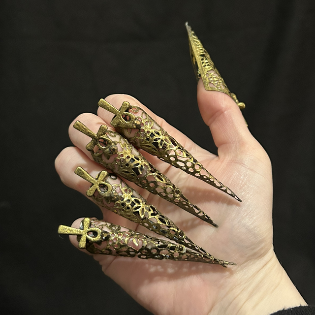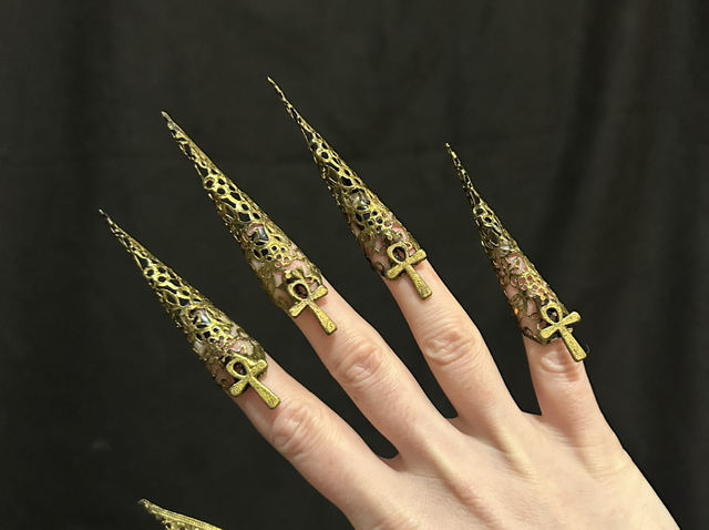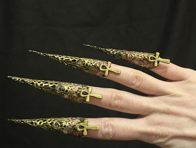 Lovely set of 5 Egyptian ankh nails! One of my early designs from 2020-2021 but still lovely! Flexible base so can be adjusted to your finger size.