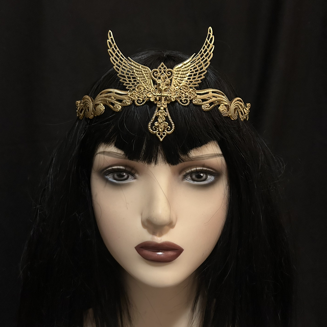 The Arch Angel Tiara transforms one of our most iconic designs into a striking wearable crown. Featuring a bold central cross, flanked by elegant golden wings, this piece evokes both sacred power and rebellious grace — perfect for those who walk between heaven and shadow.