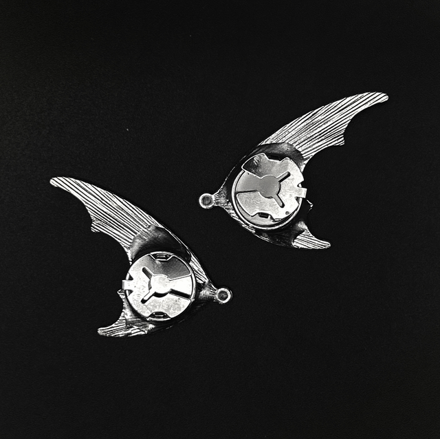 Channel a touch of nocturnal elegance with these bat wing cufflinks. Designed to slide easily over your shirt’s existing buttons, they combine effortless wear with striking gothic style—simply click on and go. Sold as a pair, perfect for adding a subtle yet bold statement to any outfit.