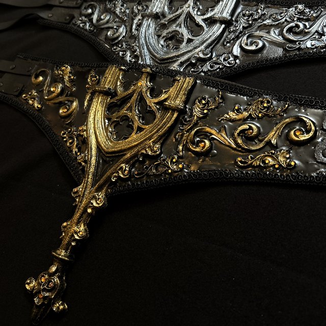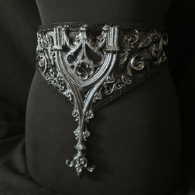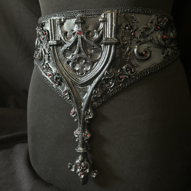 A statement piece inspired by the grandeur of baroque cathedrals. This ornate waist belt features: