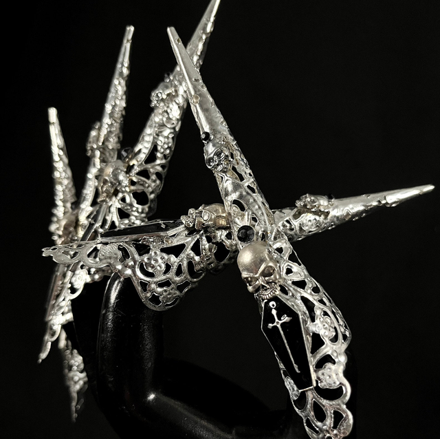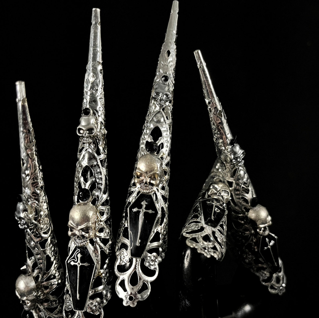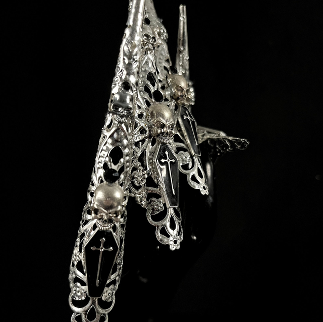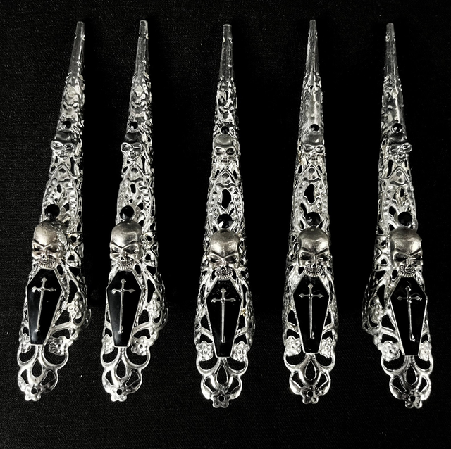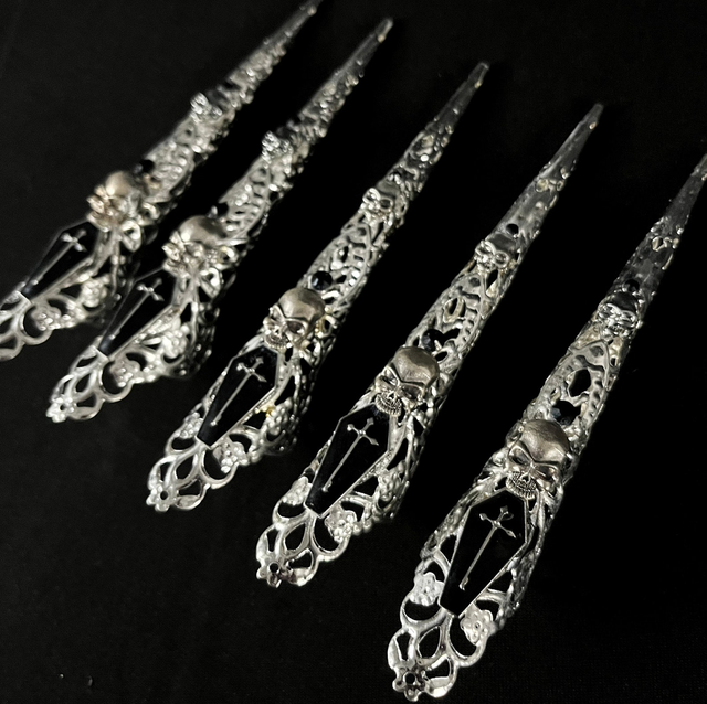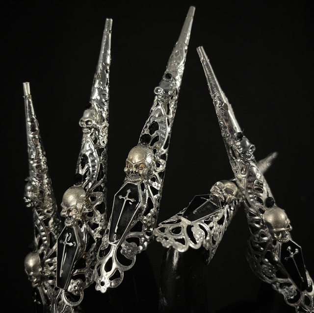 Beautiful macabre nail rings with blacl coffin design and adorned with black rhinestones.