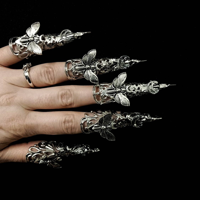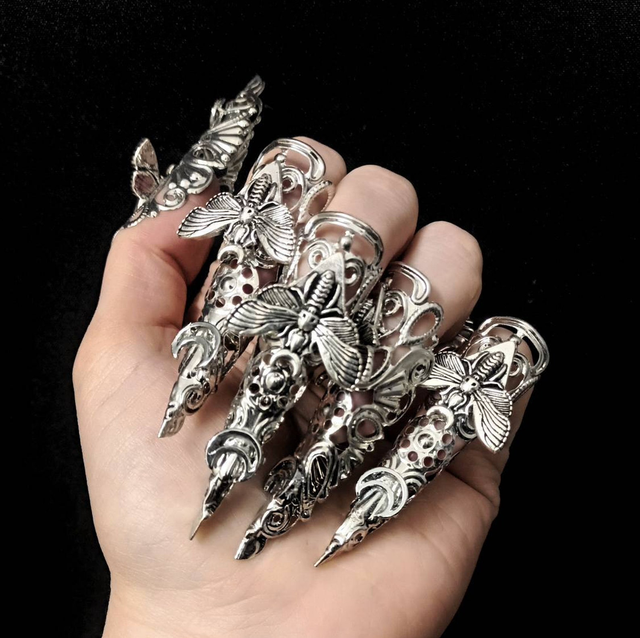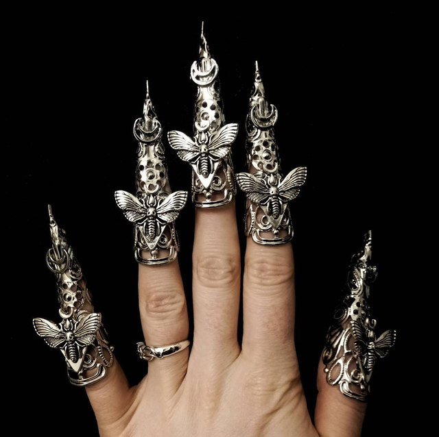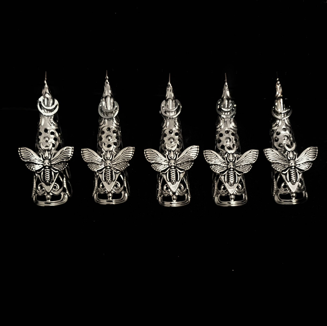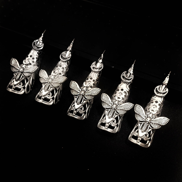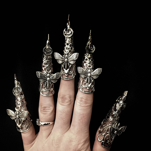 Beautiful gothic small nail claws adorned with a single deathmoth and small moon.