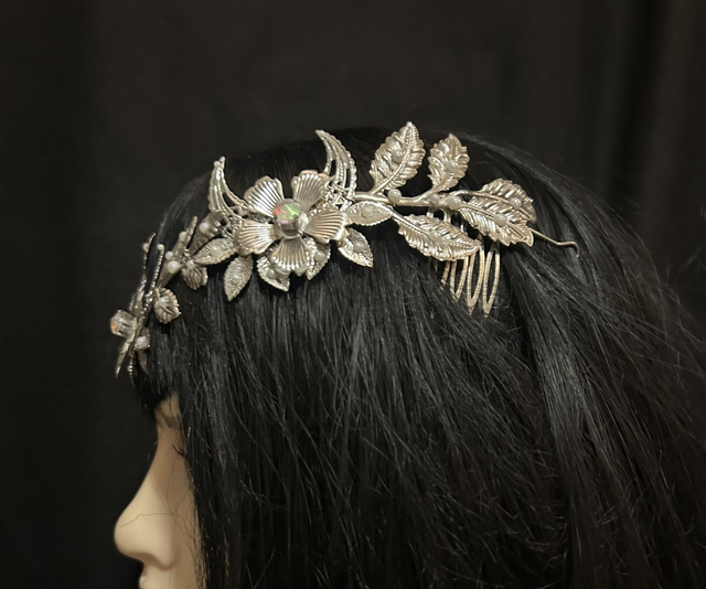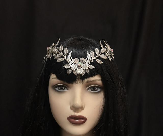 The Sage Circlet Tiara is a beautifully crafted woodland headpiece, inspired by nature’s sacred forms and pagan symbolism. Featuring intricate leaves, winding branches, blooming florals, and a triple moon design, it weaves together earthly and celestial energy in one ethereal crown.