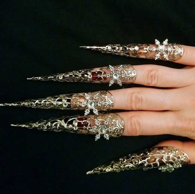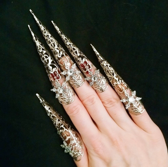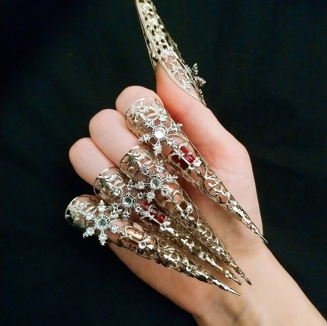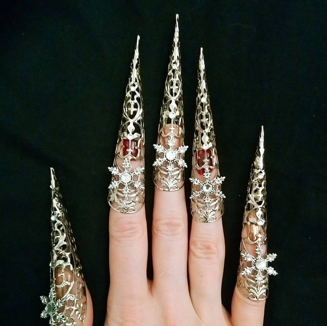 Beautiful gothic nail claws to accompany our 'Snow Queen' headwear. Each ring is adorned with multiple tiny silver gems.