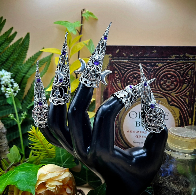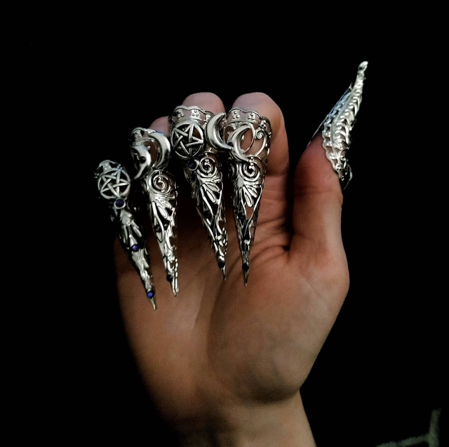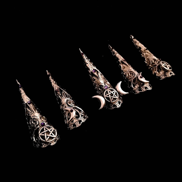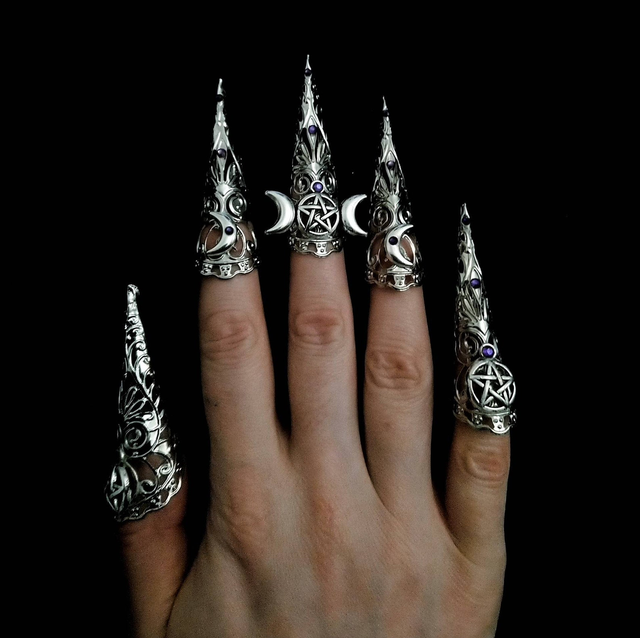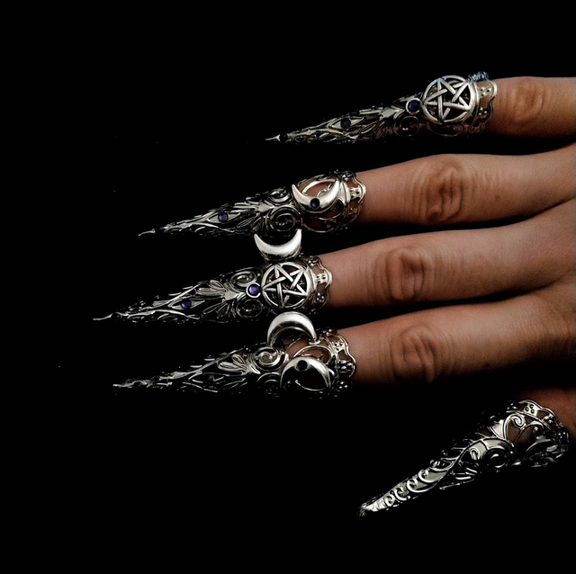 Beautiful adjustable finger nail rings to add a spooky witchy vibe to your outfit.